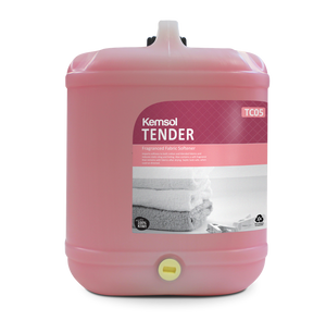 TENDER fabric softener imparts softness to both cotton and blended fabrics. It reduces static-cling and linting. TENDER contains a soft fragrance that remains with fabrics after drying.