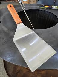 This spatula is made from food-grade stainless and has a solid wood handle. Its heavy blade with three bevelled edges and 13x15cm base make it a must have for all of your bbq needs. It has 19cm a full tang handle and measures 34cm in total length. This will have you smashing and flipping like a pro!