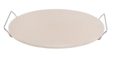 Get pizza oven-like results from your home oven! This Liberty Pizza Stone draws the moisture away from the pizza base and helps distribute heat evenly to give delicious crispy results. It comes with a chrome cradle to easily move in and out of the oven. Not just limited to pizzas, it's also great to use for scones or bread.