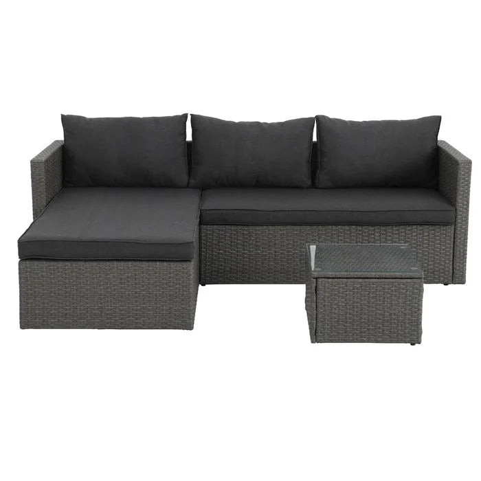 The Marquee Lamai 3 piece Corner Sofa features a durable steel frame wrapped in hand woven resin wicker with thick padded cushions for extra comfort and a coffee table with tempered glass tabletop. Easy and quick to assemble, the Marquee Lamai sofa feature unique latch and hook system with minimal tools and can be set up in minutes. With the flexibility to assemble this sofa either left or right configuration, making this sofa a must have for your outdoor space. 2 seater lounge: Width - 131cm, Depth - 70cm, Height - 62cm Chaise lounge: Width - 80cm, Depth - 140cm, Height - 62cm Coffee table: Length - 45cm, Width - 45cm, Height - 31cm