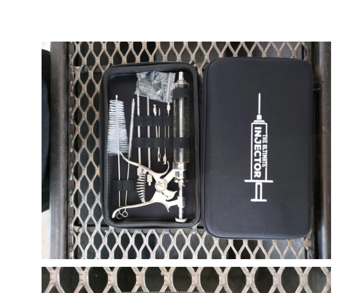 This injector Comes in a convenient Carry Bag and includes a replacement gasket, cleaning brush’s and 6 different needle gauges.